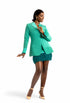 High Quality non-stretchy Crepe fabric, Embellished lapel, Feather details, Metallic details.